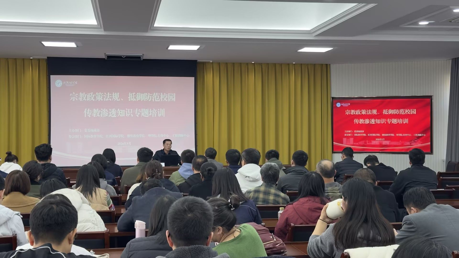 3月25日,betvlctor1946组织全体教师参加了学校统一组织的宗教政策法规、抵御防范校园传教渗透相关知识学习培训。本次培训是落实学校《关于开展马克思主义宗教观宣传教育活动的实施方案》的文件精神,对全体教职工全覆盖开展相关知识培训的相关工作要求,通过本次学习培训,进一步提升了全体教职工的认知能力和水平。