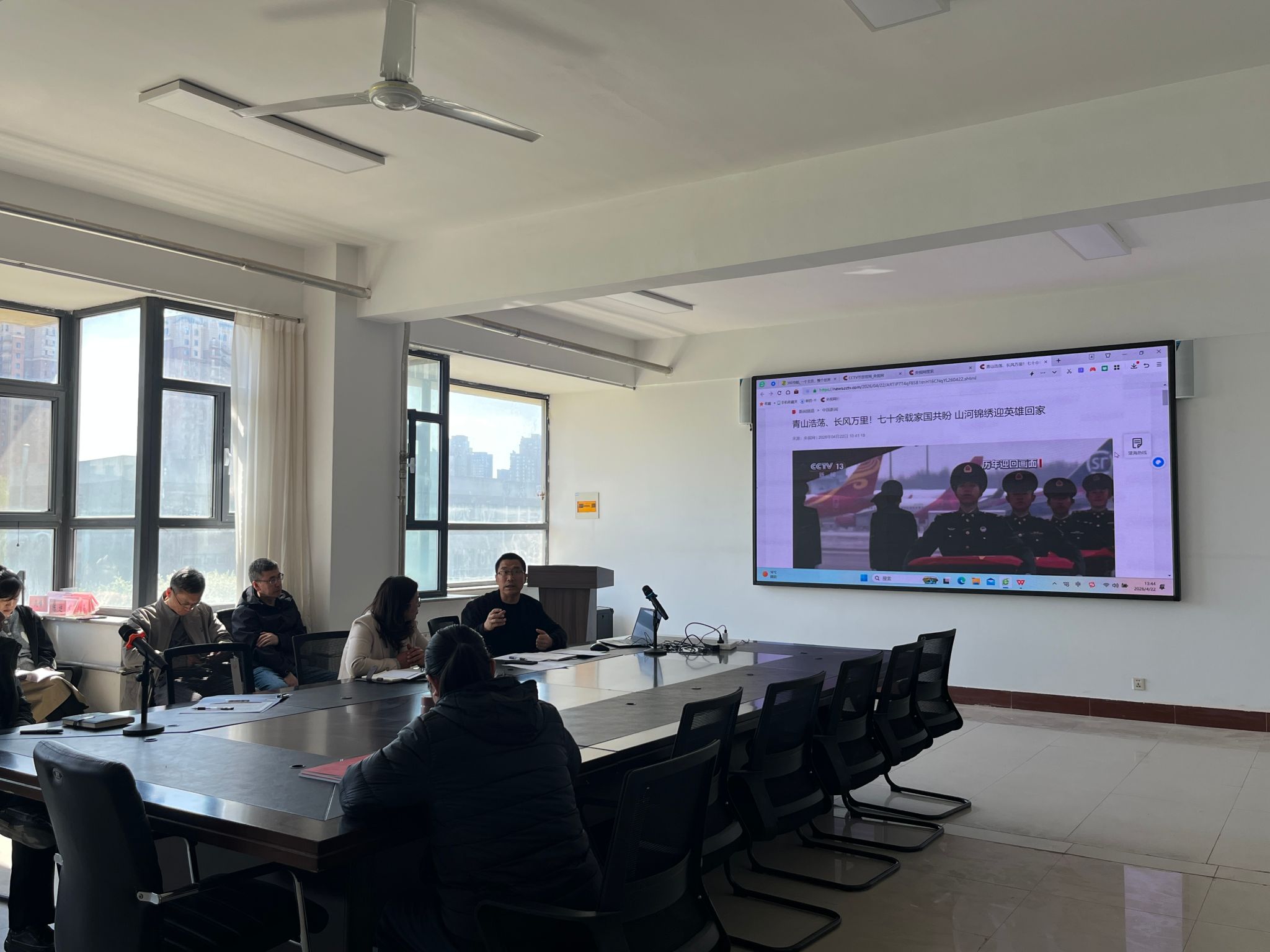 4月22日,betvlctor1946根据学校统一安排,开展特殊党日活动,组织全体教师集中观看第十三批在韩志愿军烈士遗骸迎回仪式相关报道,并结合部门实际情况,研究部署传承弘扬伟大抗美援朝精神的大思政课,推动将抗美援朝精神融入学校教育教学全过程,进一步激发广大师生的爱国之心、强国之愿、报国之志。