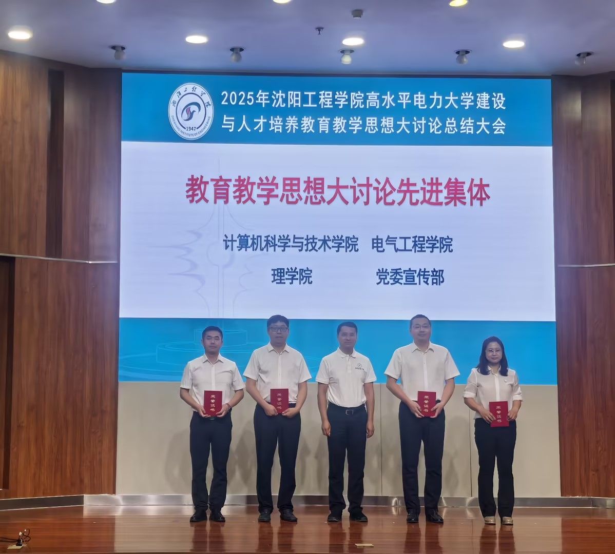 6月25日,学校召开“2025年伟德国际1946高水平电力大学建设与人才培养教育教学思想大讨论总结大会”,betvlctor1946荣获“教育教学思想大讨论先进集体”光荣称号,史书慧院长代表学院上台领奖,校党委书记王强亲自为获奖部门频发荣誉证书。