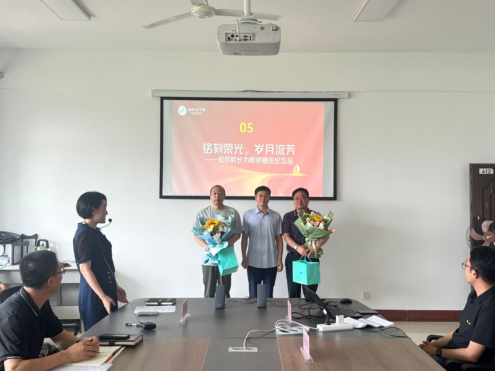 副校长王启民亲临现场为两位教授颁发“躬耕教坛”纪念品,并在讲话中强调,荣休教师是学校的宝贵财富,其治学精神与育人情怀将激励新一代教育者接力前行,续写立德树人新篇章。