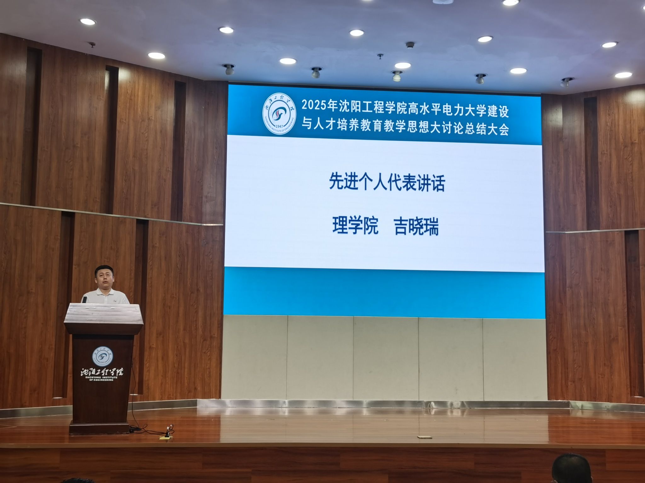 6月25日,学校召开“2025年伟德国际1946高水平电力大学建设与人才培养教育教学思想大讨论总结大会”,betvlctor1946副院长吉晓瑞作为先进个人代表在大会上作交流发言。