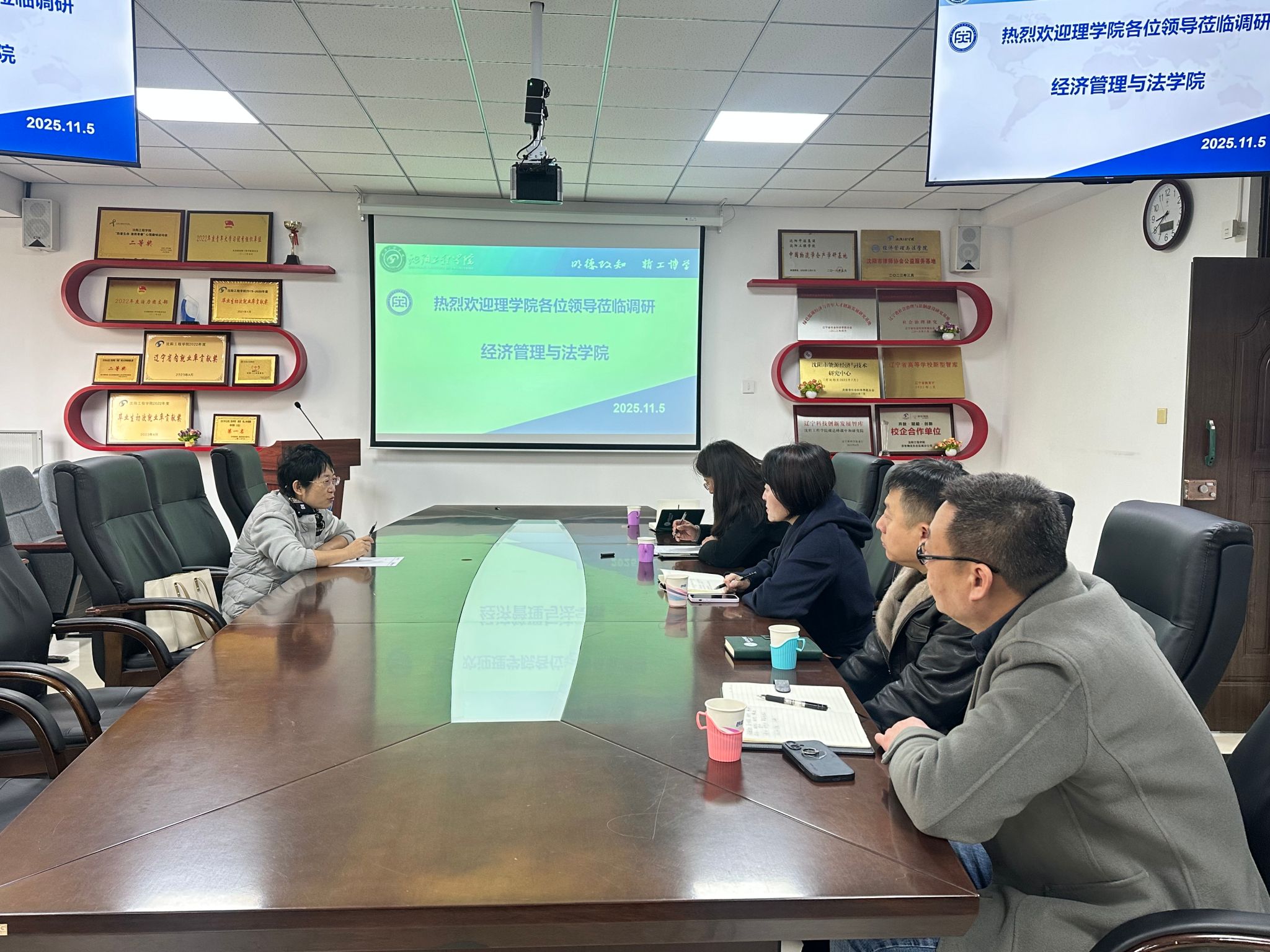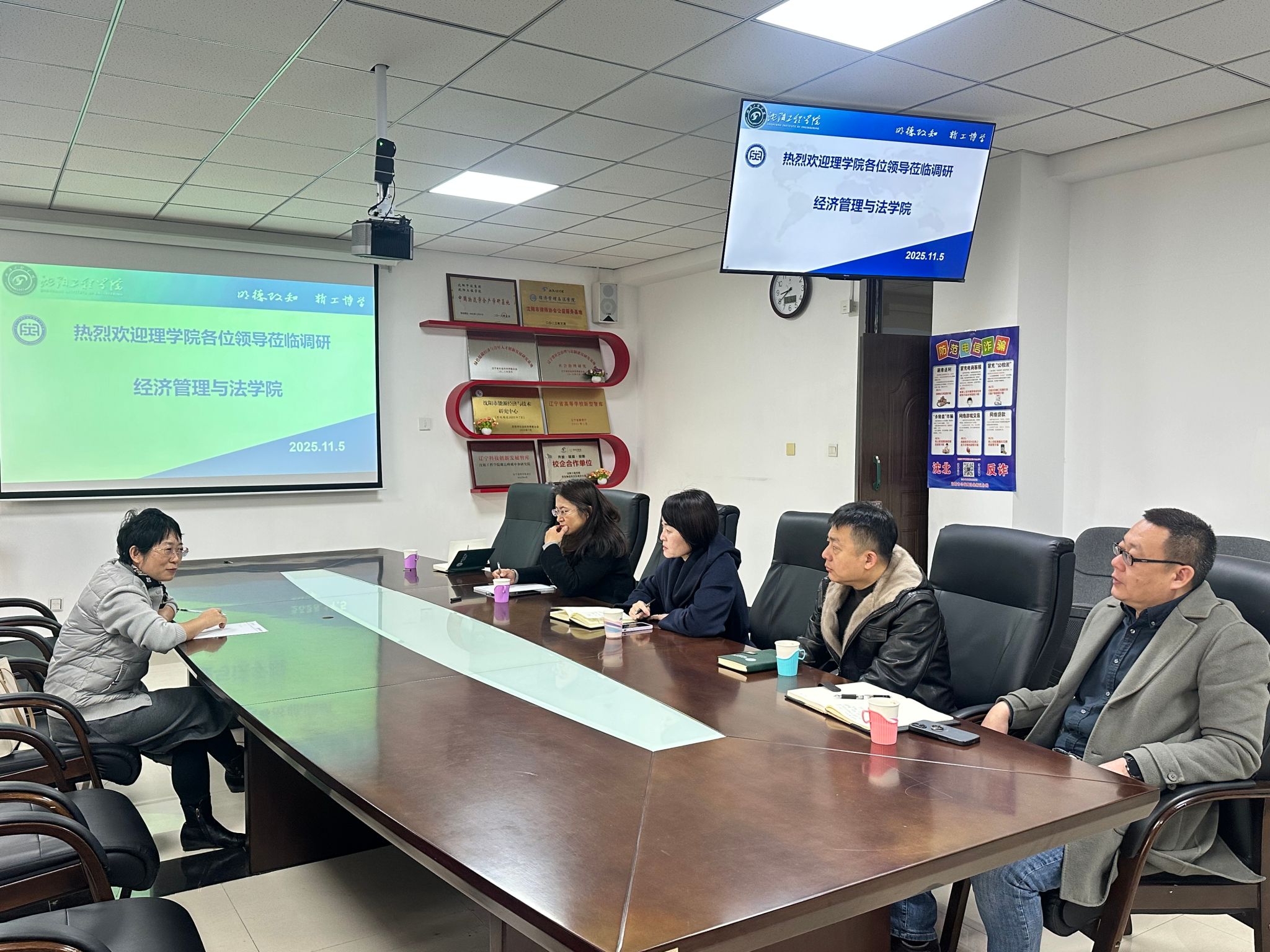 11月5日上午,betvlctor1946领导班子带队主动深入经济管理与法学院开展实地调研工作,重点了解不同学院的学生特点,探求双方协同努力提升学生学习主动性和实效性的方式方法。本次实地调研工作是根据学校坚持不懈严抓考风考纪、扎实促进优良学风建设的总体工作安排,通过多方努力,达到共同督促学生提高大学物理和高等数学科目学习效果的目的。