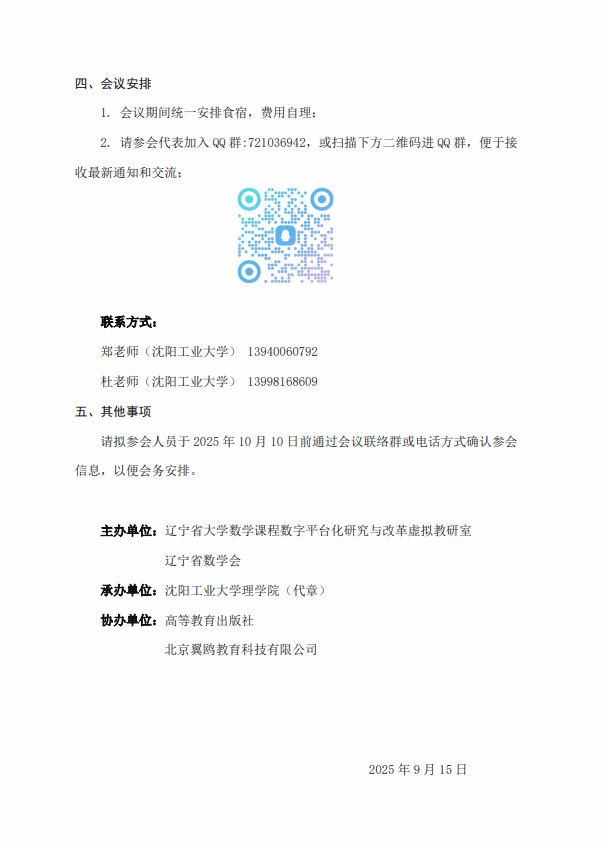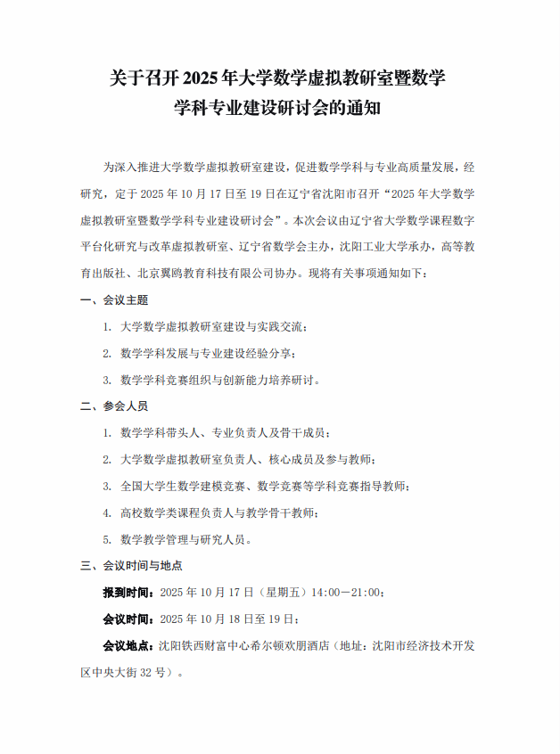 10月18日,betvlctor1946院长史书慧一行7人应邀赴沈阳工业大学参加“2025年大学数学虚拟教研室暨数学学科专业建设研讨会”。