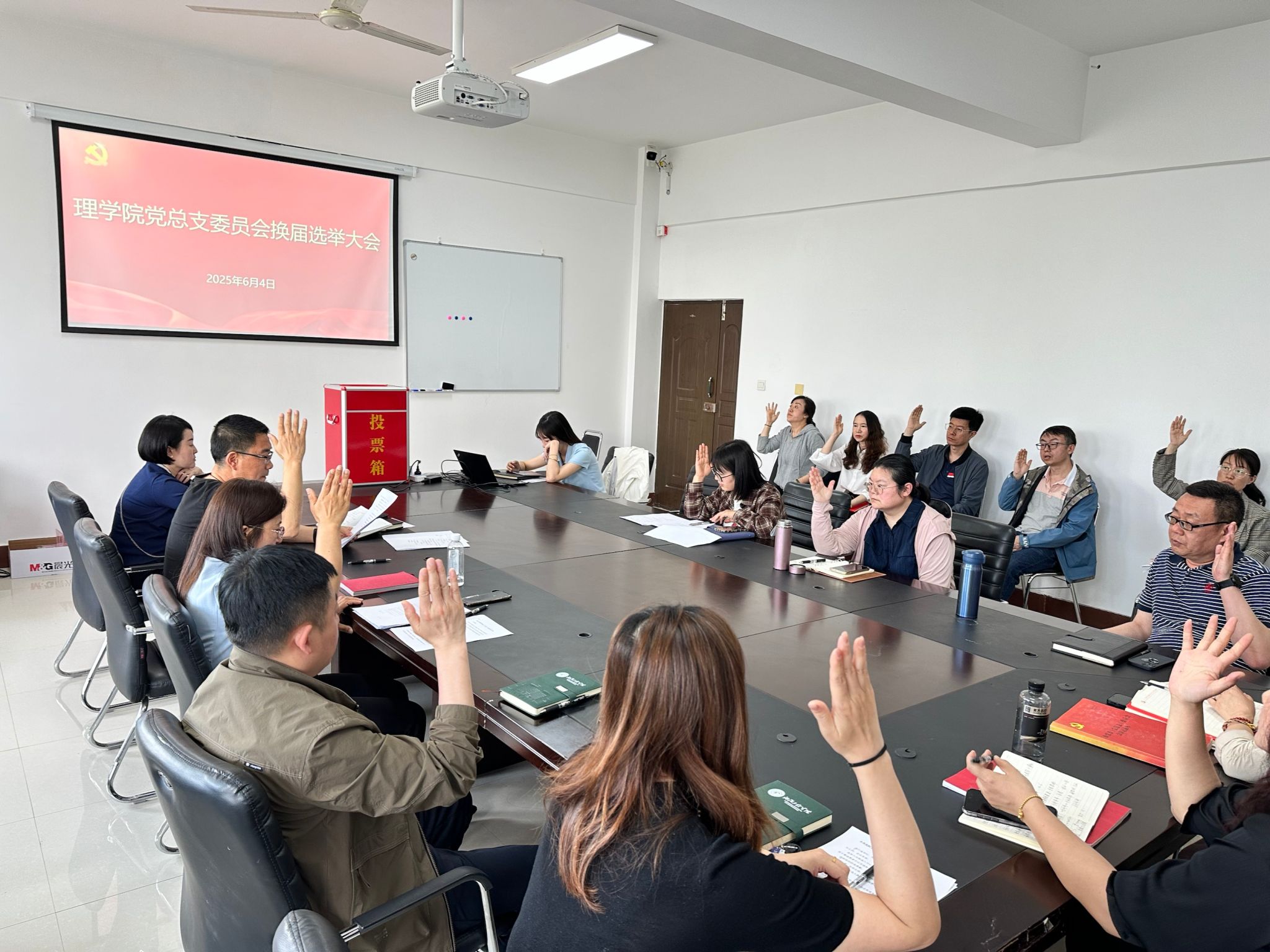 6月4日下午,在全体员工大会结束后,betvlctor1946组织全体党员同志召开了党总支换届选举大会,按照学校党委的统一安排部署,全体党员同志严格按照选举程序,选举产生了新一届betvlctor1946党总支委员,全体当选委员召开了第一次委员会,明确的委员会分工,为实现部门高质量发展奠定了重要基础。