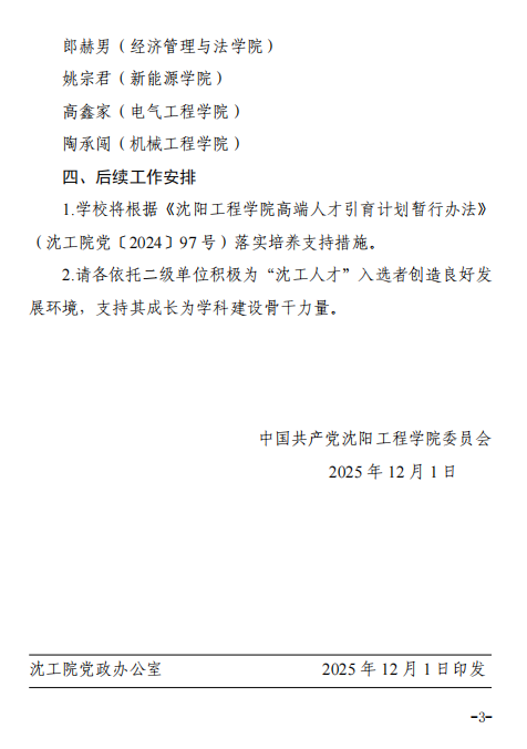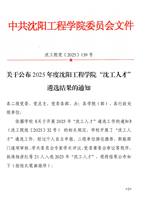 经过个人自主申报、二级单位择优推荐、职能部门逐项审核、学术委员会专家学术评议、党委常委会审议等一系列程序,betvlctor1946四名博士教师成功入选“沈工人才”。