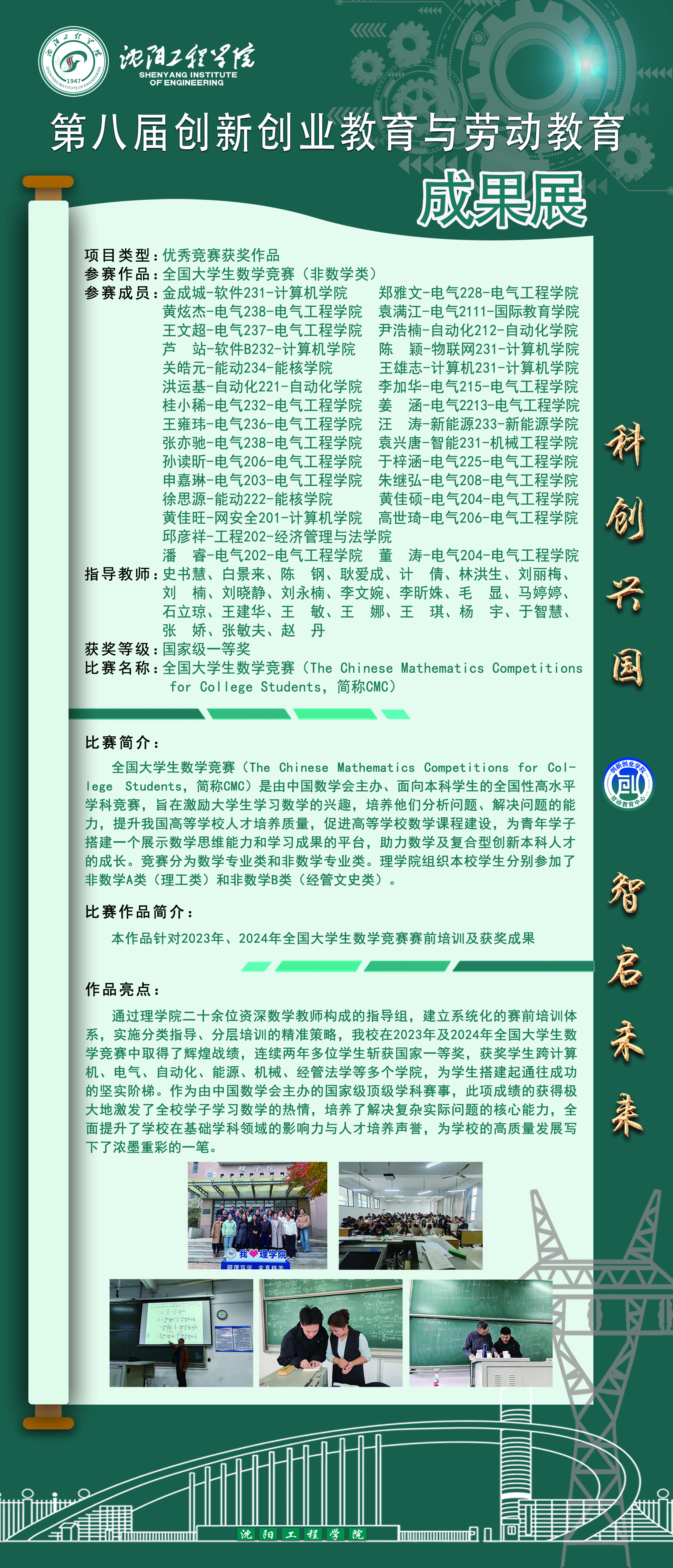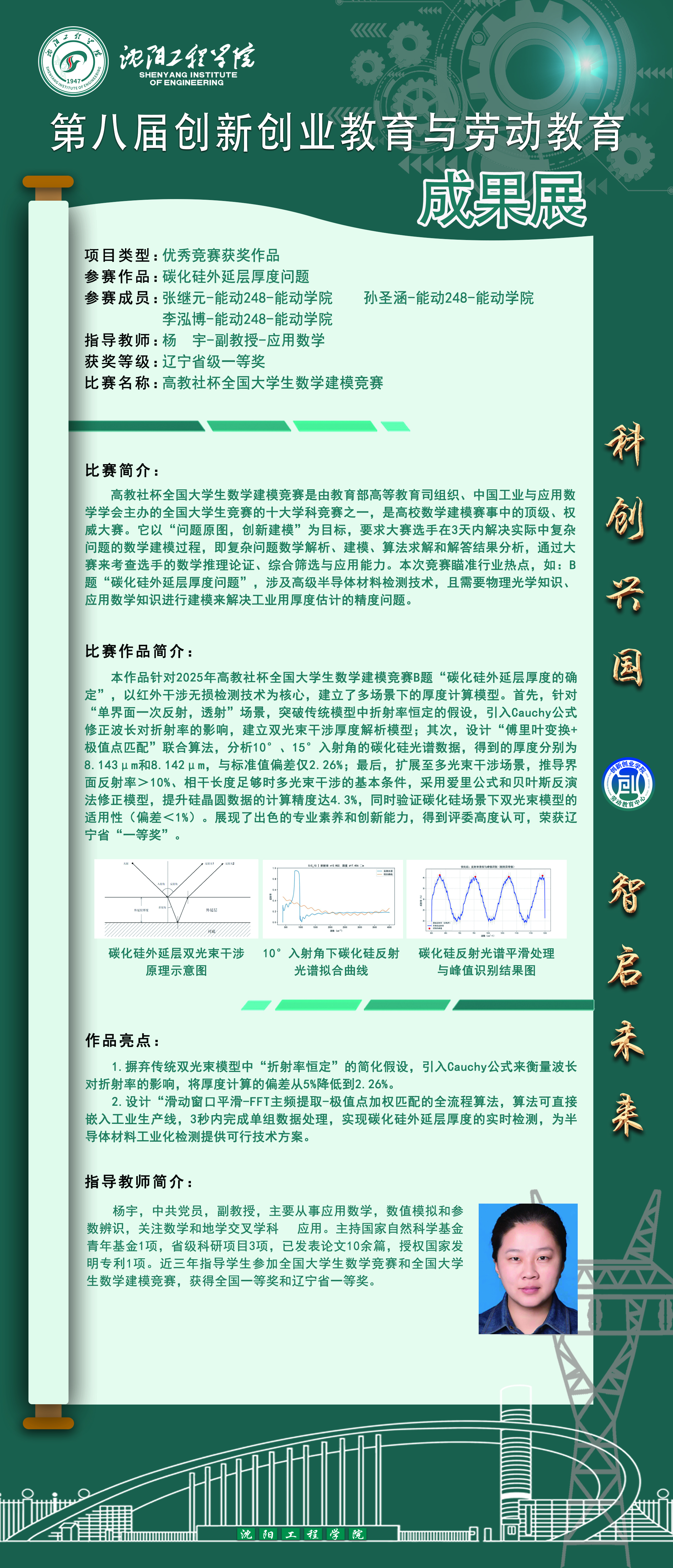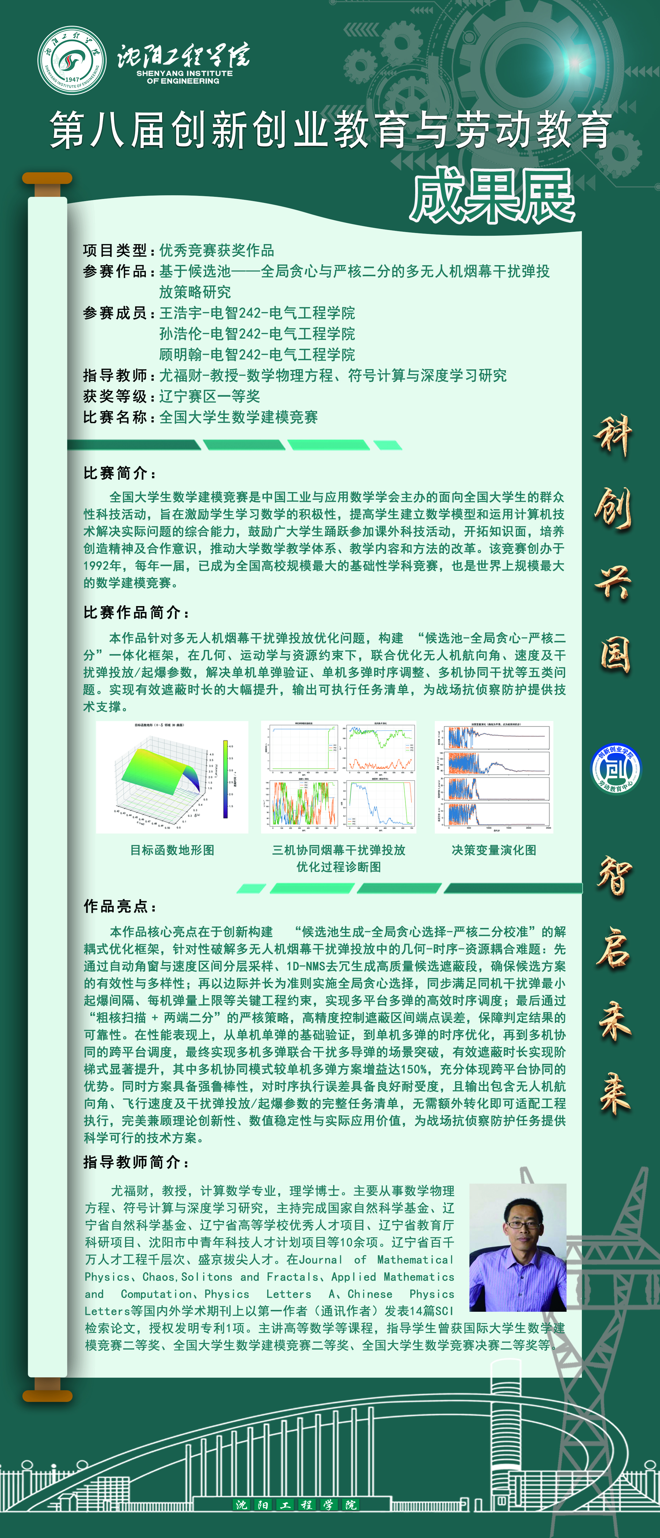 2025年全国大学生数学建模竞赛获奖名单正式公布。在betvlctor1946的精心组织与指导下,我校参赛队伍表现出色,共获得省级一等奖5项、二等奖5项、三等奖9项。此次优异成绩的取得,是betvlctor1946长期以来重视学科竞赛、强化实践教学的结果,也是学校深化教育教学改革、培养创新型人才的生动体现。通过参加数学建模竞赛,学生们不仅提升了数学应用能力、创新思维能力和团队协作能力,还为今后的学习和工作打下了坚实的基础。未来,betvlctor1946将继续总结经验,不断完善竞赛组织和指导工作,进一步激发学生参与学科竞赛的积极性和主动性,为培养更多具有创新精神和实践能力的高素质人才贡献力量。